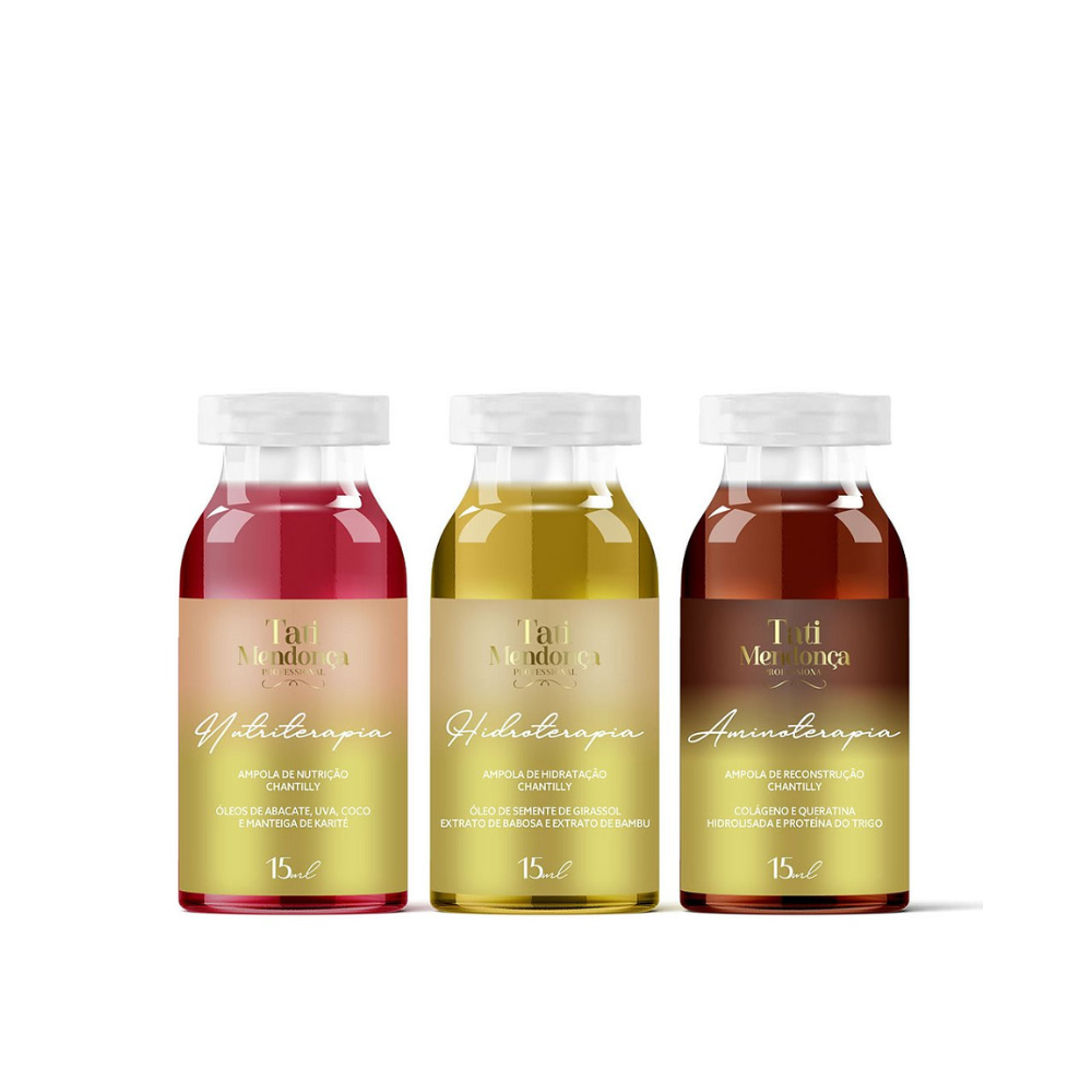 Experimente o poder do cronograma capilar completo com o Kit Ampolas Terapia da renomada marca Tati Mendonça. Esse kit contém ampolas de reconstrução, nutrição e hidratação, oferecendo um tratamento completo para os seus cabelos. Cada ampola possui uma combinação única de ativos poderosos para atender às necessidades específicas dos seus fios.